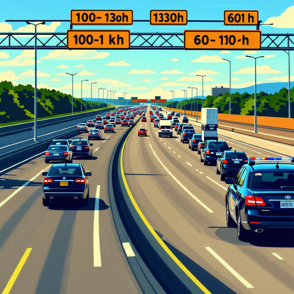 - **최고 속도**: 대부분의 고속도로에서 최고 속도는 100km/h에서 130km/h 사이입니다.