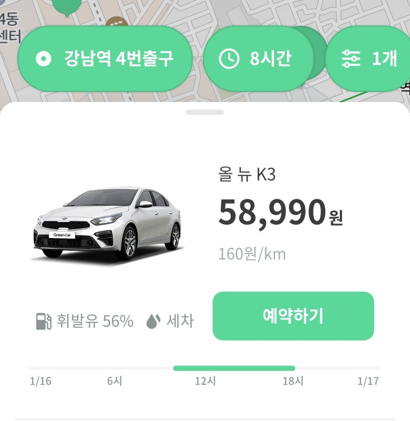 또한, 다양한 차량 옵션이 있어 가격대도 다양합니다. 예를 들어, 올뉴모닝은 19,320원으로 저렴하게 이용할 수 있으며, 더뉴모닝은 23,520원으로 제공됩니다.