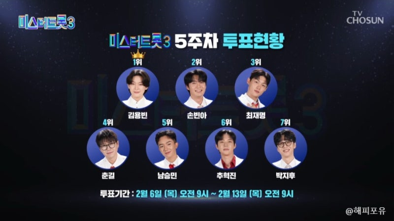 #미스터트롯3 #순위발표 #김용빈 #손빈아 #최재명 #트로트 #TV조선 #오디션 #경쟁 #팬투표 #TOP10