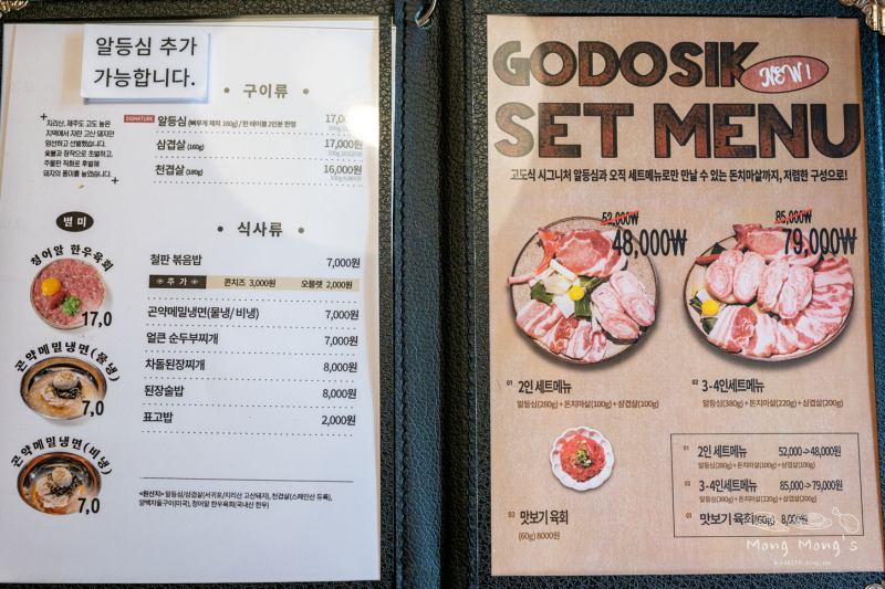 각 맛집의 메뉴와 가격을 살펴보겠습니다.