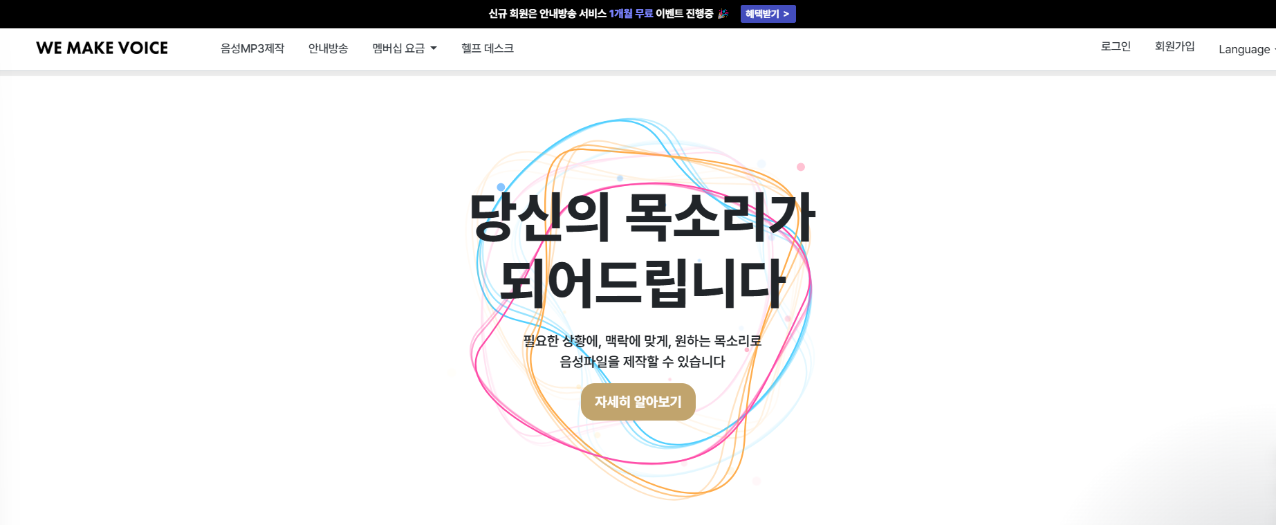 회원 가입만 하면 대부분의 기능을 무료로 사용할 수 있으니, 지금 바로 위메이크보이스 TTS를 직접 경험하고 그 퀄리티를 확인해보세요!